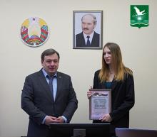 Valery Ivanovich Dunai, Rector of Polessky State University, presented a Letter of Thanks to Alesya Kravchuk for the effective leadership of the University's Student Council, a high level of responsibility and a creative approach to the implementation of youth policy.