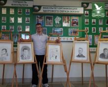 The Faculty of Healthy Lifestyle Organization hosts the exhibition "Heroes of Sports". The author is a first-year student of the faculty Pavel Zhukov. Pavel is a candidate for the Master of sports in freestyle wrestling. Apart from being actively involved in sports, he enjoys drawing.
